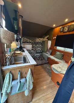 Welcome to Big John — a comfy, rustic, nature-inspired horsebox conversion that promises cosy evenings by the log burner, peaceful mornings watching alpacas graze, and restful nights under a blanket of stars. Designed with comfort and charm in mind (hello, William Morris strawberry thief wallpaper and blackout blinds!), this is glamping with a touch of magic.